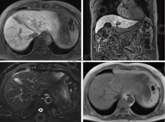 案例:中老年男性,体检发现肝占位,左叶内侧段小结节,约10mm左右,当地普外科考虑小肝癌,建议手术治疗。为明确诊断。我们为他进行MRI普美显增强扫描肝脏大小、形态正常,肝表面光滑,左右叶比例协调,肝裂不宽;肝左叶内侧段见一类隋圆形结节影,长径约10mm,T1WI呈等低信号,T2WI呈等稍高信号,DWI呈稍高信号,增强扫描肝动脉期明显强化,门静脉期及延迟期呈稍高信号,肝胆期呈高信号。