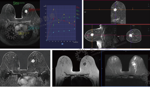 早期乳腺癌筛查,建议结合磁共振、乳腺钼靶及超声,通过动态增强与动态曲线的构画,能取得更高的诊断效能。