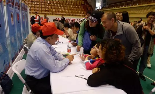 21日早晨,体育馆门口人头攒动,围满前来就诊的群众。9点30分即举行了简短的启动仪式,阐明“赣鄱情.健康行”上海活动的意义、筹备经过和程序办法。此次活动是赣籍医生义诊以来规模最大的一次公益活动,线上报名义诊人员1000多,现场报名近1000人,很多是一人看几科,总计问诊达3000多人次。