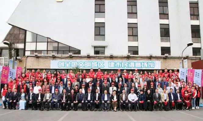 各位政府领导的致辞结束后,在场领导与参会的近百位三甲医院专家步出报告厅,在广场上留下合影,共同为2018沪赣两地健康行公益活动见证。