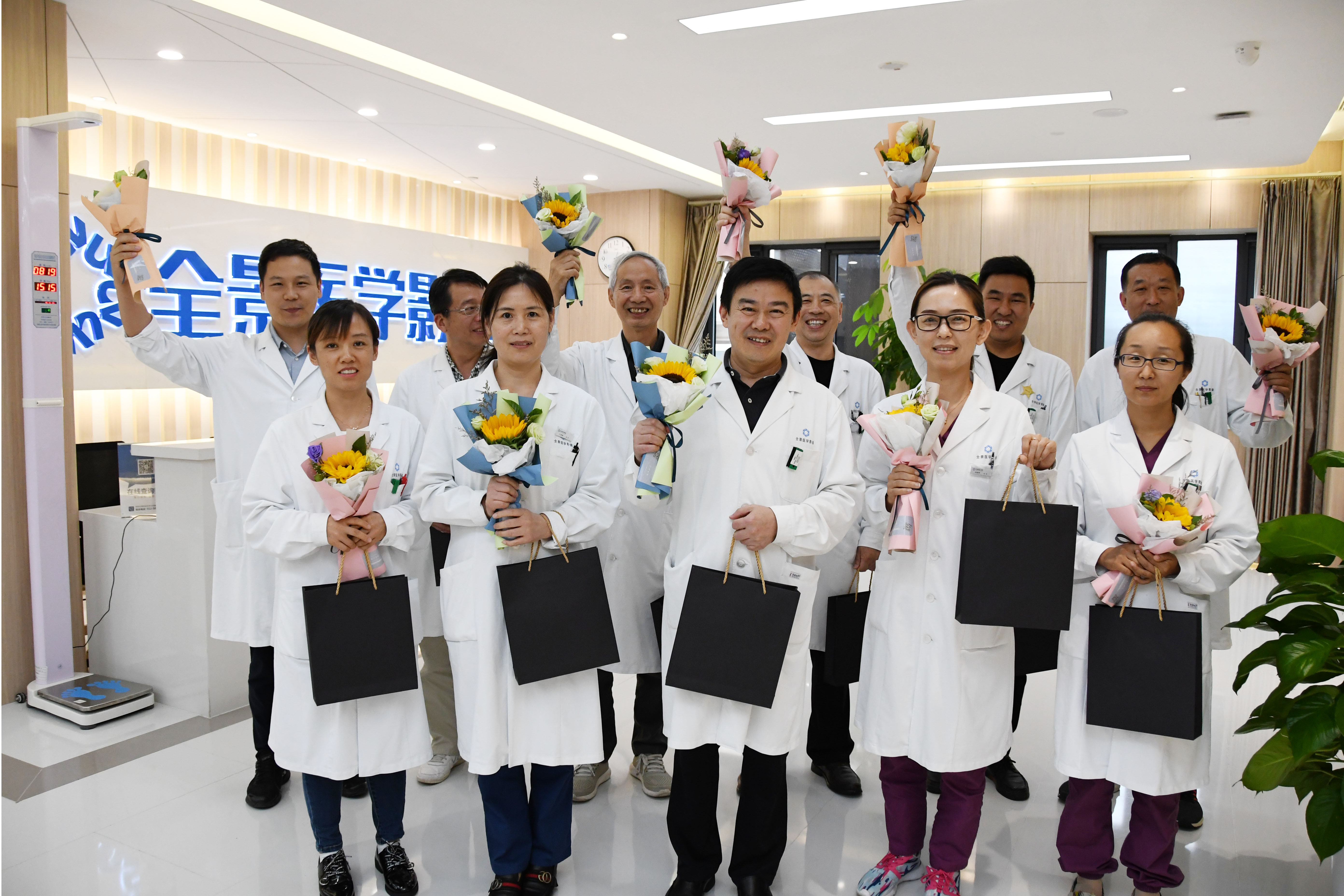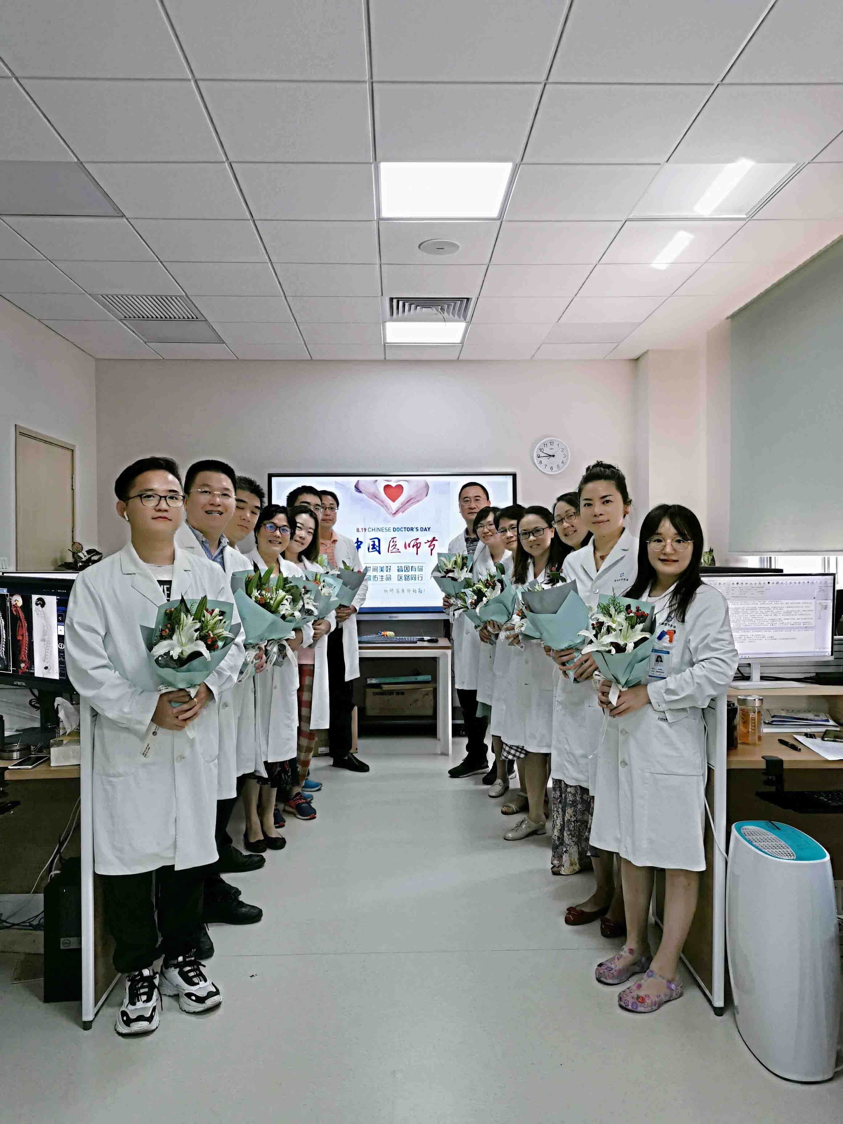 上海全景医学影像诊断中心在中心六楼举行8· 19医师节庆祝活动,向医生们表示致敬,中心领导张建院长、总部人力行政中心副总监胡静静、客服部陈劲波主任慰问辛苦工作的医务人员,与大家共同庆祝医师节。