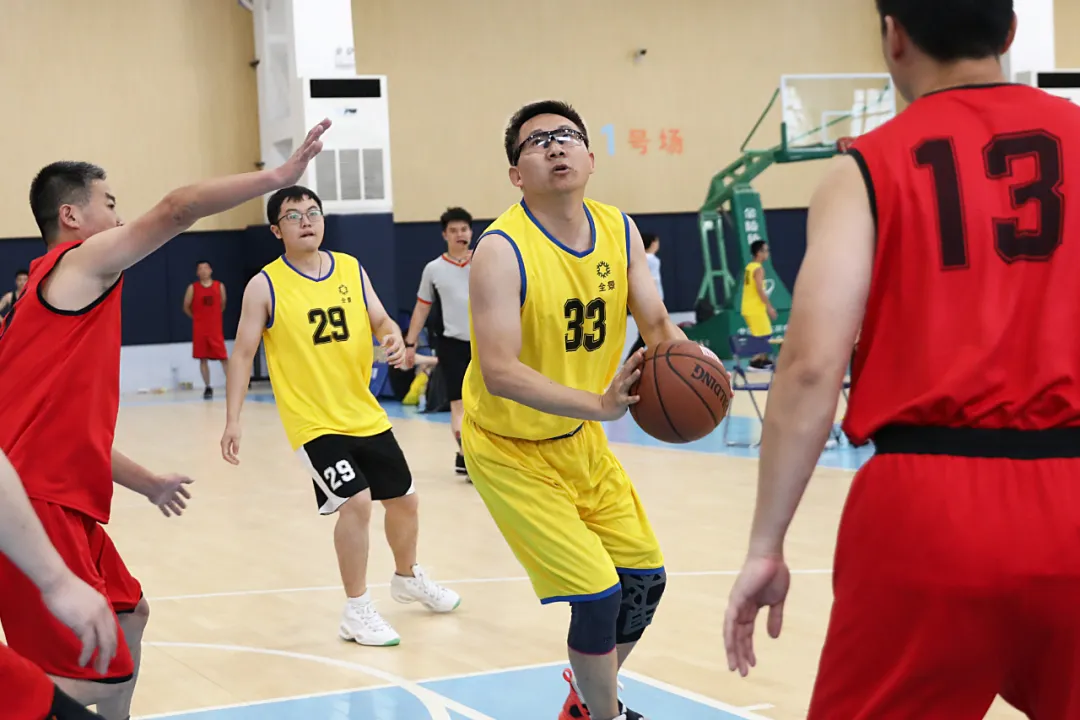 现场气氛燃爆,球员们拼抢十分激烈,带球、运球、投篮等一系列动作潇洒、规范,引来观看比赛的同事阵阵喝彩。