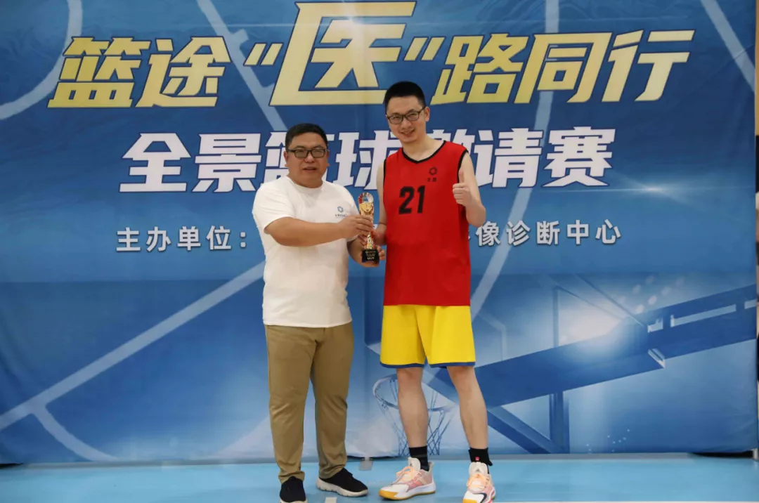 总部健康管理总监常磊为全景医学影像篮球队颁发“最佳组织奖”