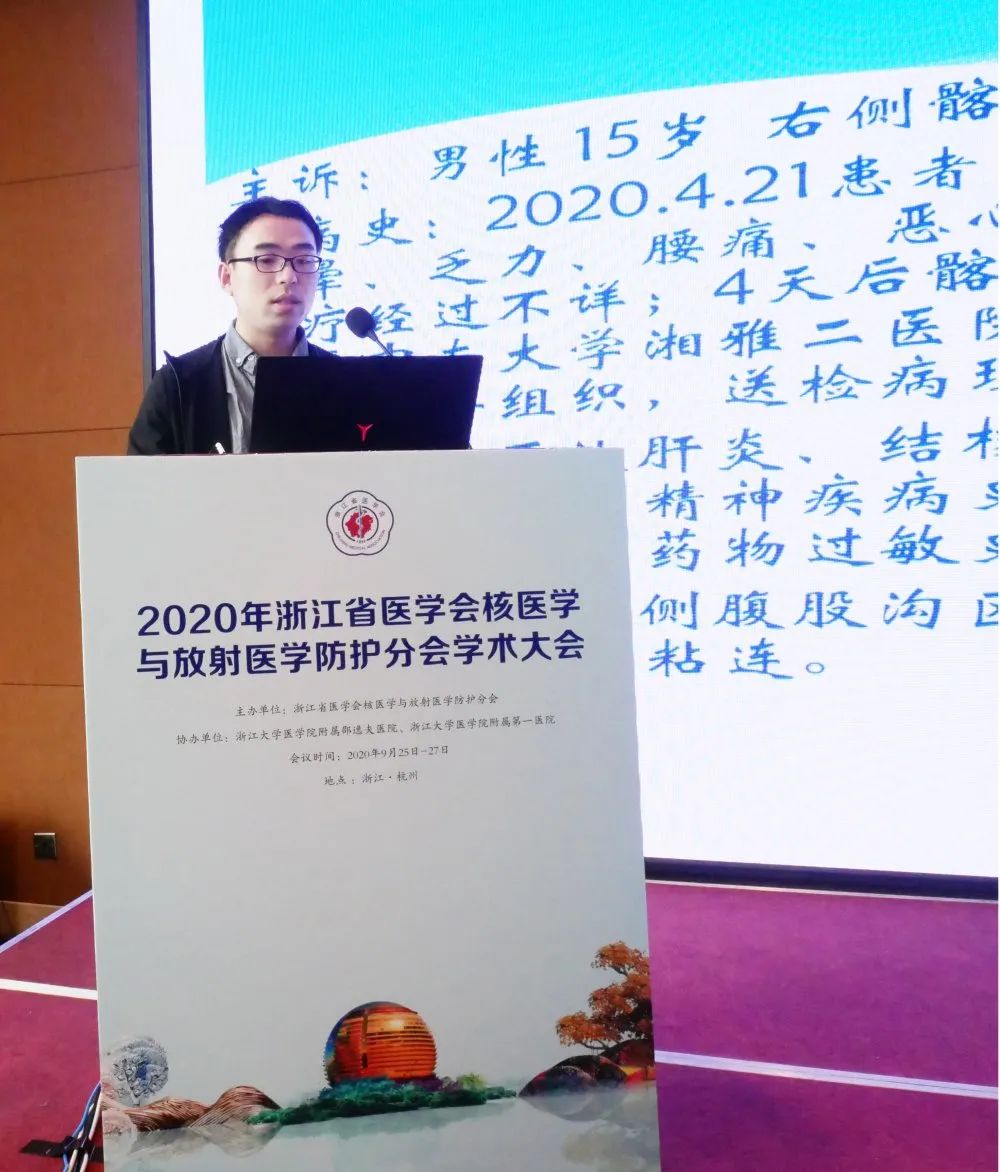 2020年9月26-27日, 由浙江省医学会核医学与放射医学防护分会主办的《浙江省医学会核医学与放射医学防护分会学术会议》在杭州天元大厦举行。楼岑、赵葵、程爱萍、褚玉、张宏、李林法、马明强、潘建虎、赵尧贤、董孟杰、王祖飞、张联合等浙江省内核医学与放射防护学方面的教授专家,及中华核医学分会三任领导线上发来贺词、浙江省医学会领导参加会议并致辞。
