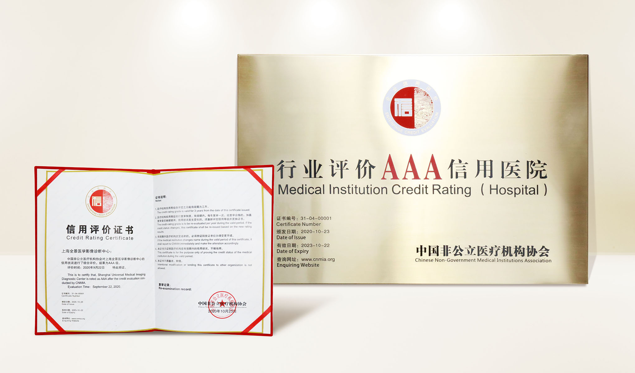 上海全景医学影像诊断中心获得“AAA五星”单位荣誉,代表了上海全景的社会信用与服务能力得到了行业认可、中心的综合实力已经达到国家先进水平,同时也意味着中心在科学化、制度化和规范化发展方面迈向了一个新的起点。