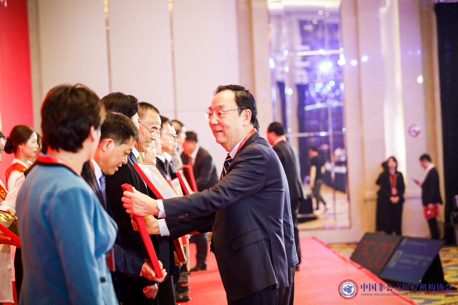 中国非公立医疗机构协会副会长闫东方为获奖单位颁奖