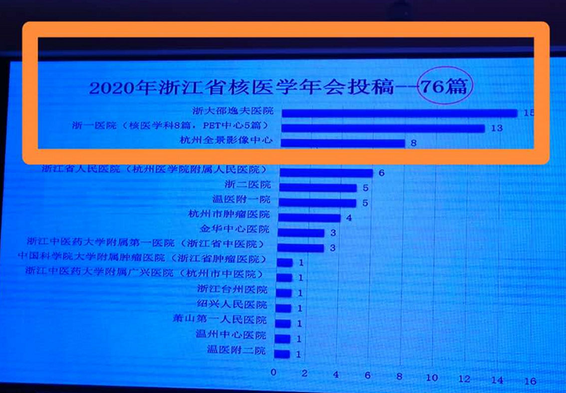此外,在浙江省核医学年会投稿中,杭州全景中心共投稿8篇,投稿量居2020浙江省核医学年会投稿第3名。