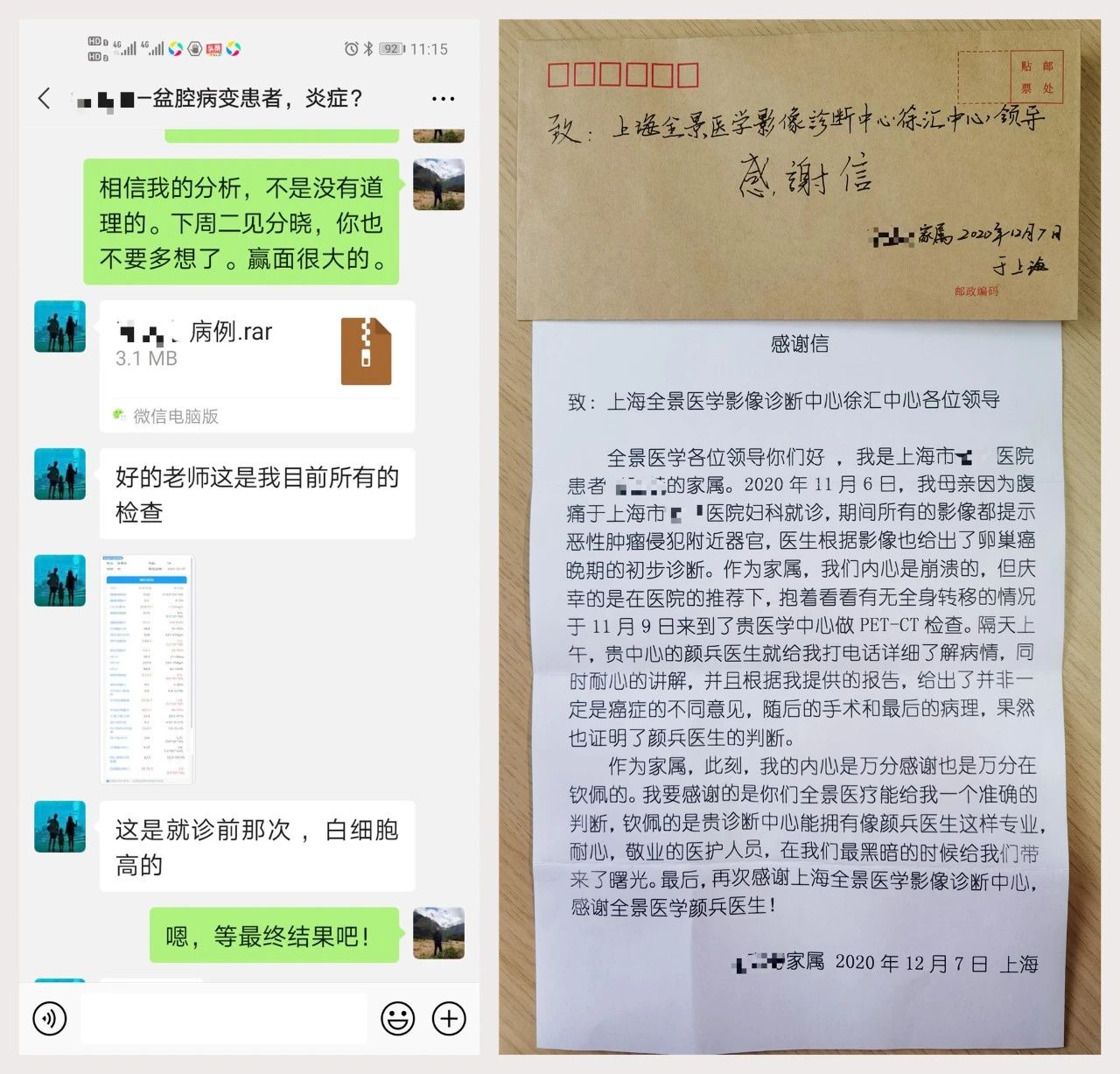 患者送上的感谢信