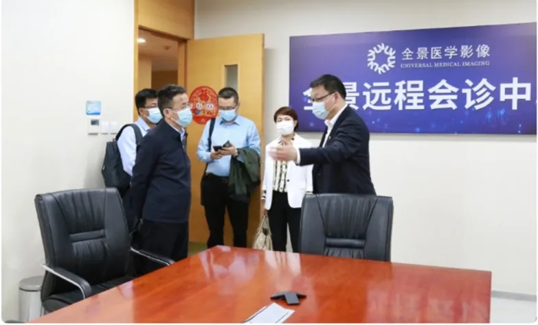 座谈会前,兰卫健委领导对全景的中心环境、影像科室、远程会诊中心以及日常运营情况进行了参观,对全景全面深入了解。