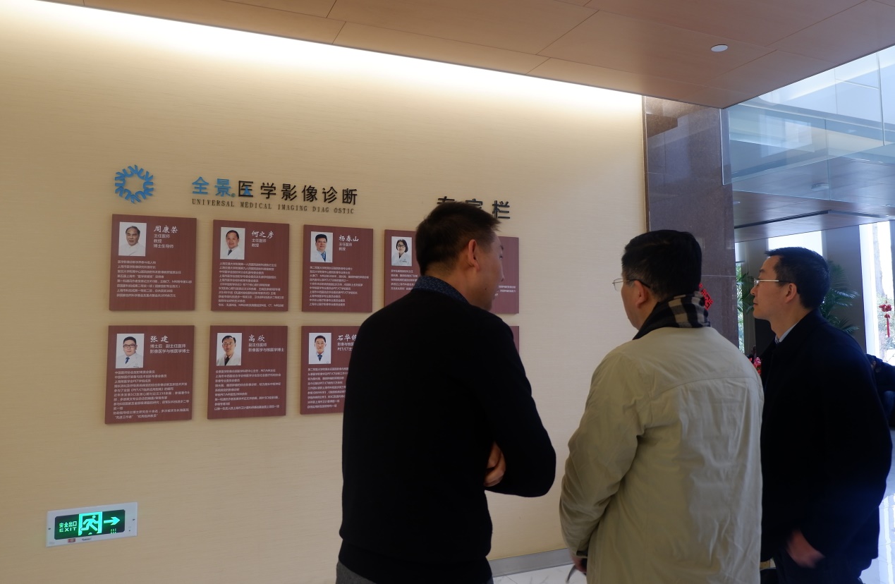 3月22日下午,上海市卫计委副主任闻大翔、医政医管处处长吴宏、干部人事处副处长倪艳华一行莅临上海全景医学影像诊断中心进行调研指导工作。全景医学集团董事长杨环球先生、上海全景医学影像诊断中心副院长张建博士、总部医学科研中心主任高欣博士等热情接待,并陪同在中心参观调研。