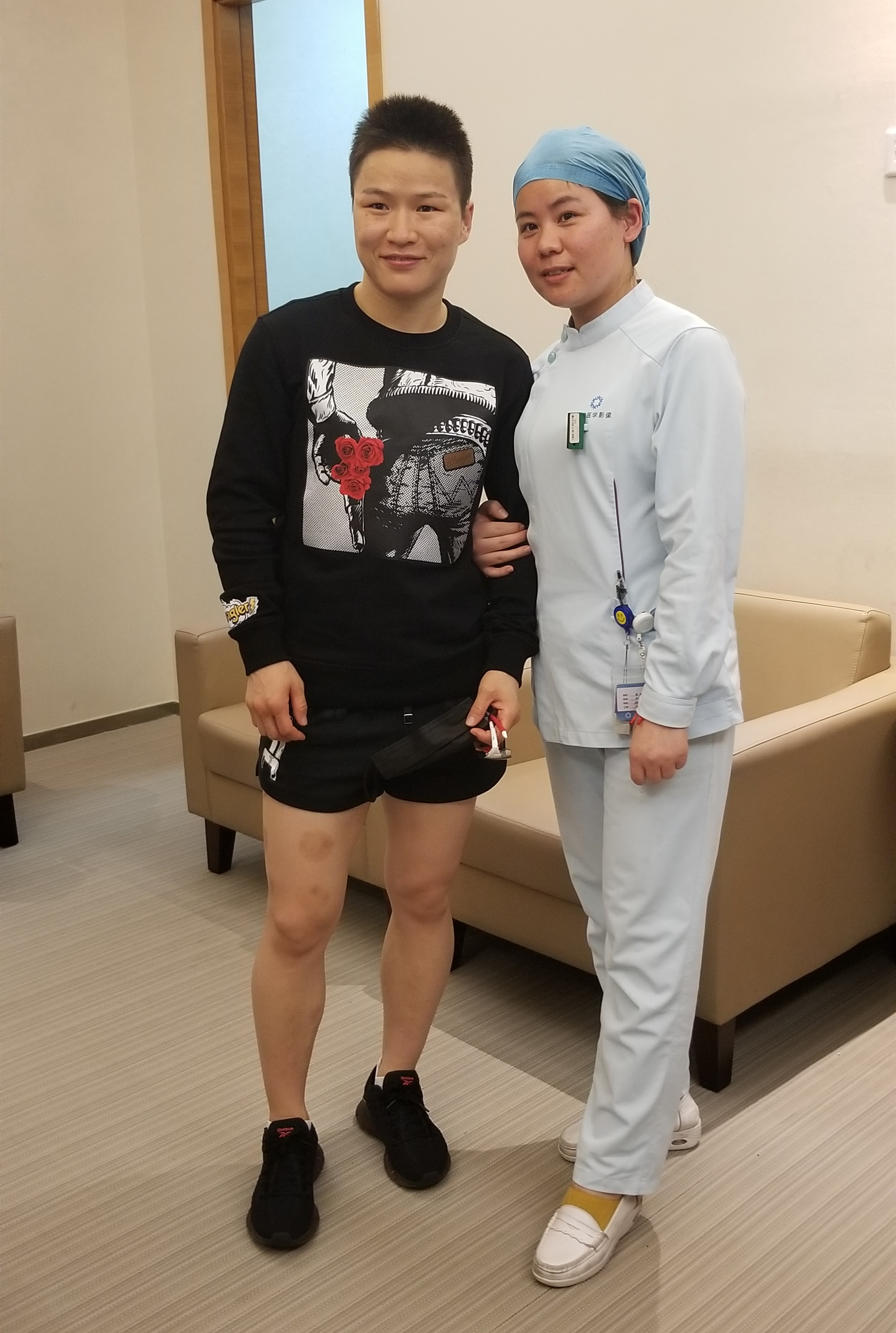 综合格斗,是一种规则极为开放的竞技格斗运动,比赛允许选手使用拳击、巴西柔术、泰拳、摔跤、跆拳道、空手道、柔道、散打等多种技术,被誉为搏击运动中的“十项全能”。由于运动员要在激烈的对抗中采用踢、打、摔等多种方式进行比赛,极易造成运动损伤,所以运动员要格外注意身体状况,做好身体检查尤其重要。 5月21日下午,张伟丽来到上海大学附属全景医学影像诊断中心进行3.0T磁共振检查。