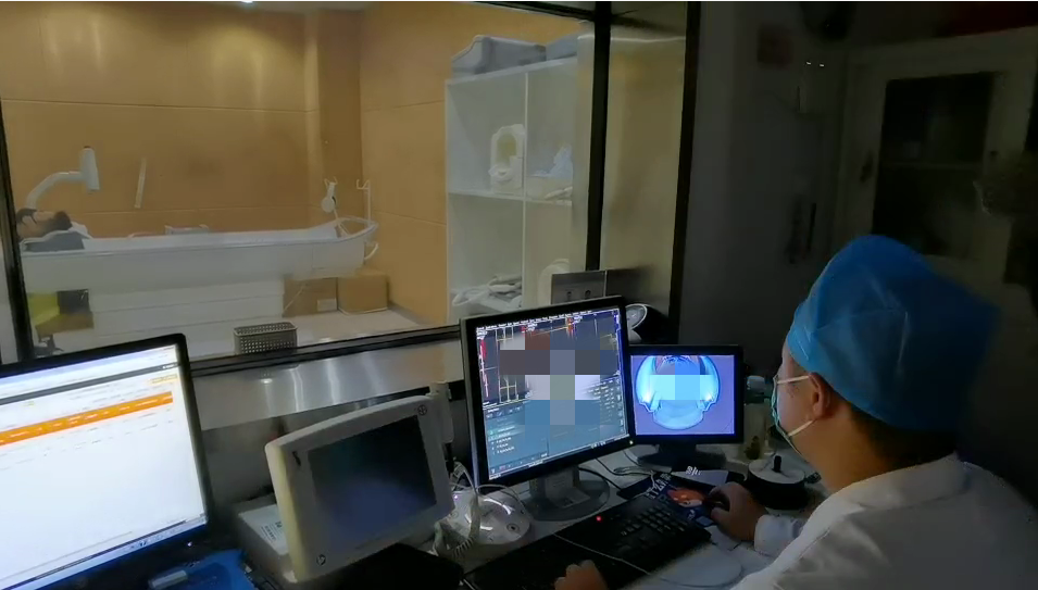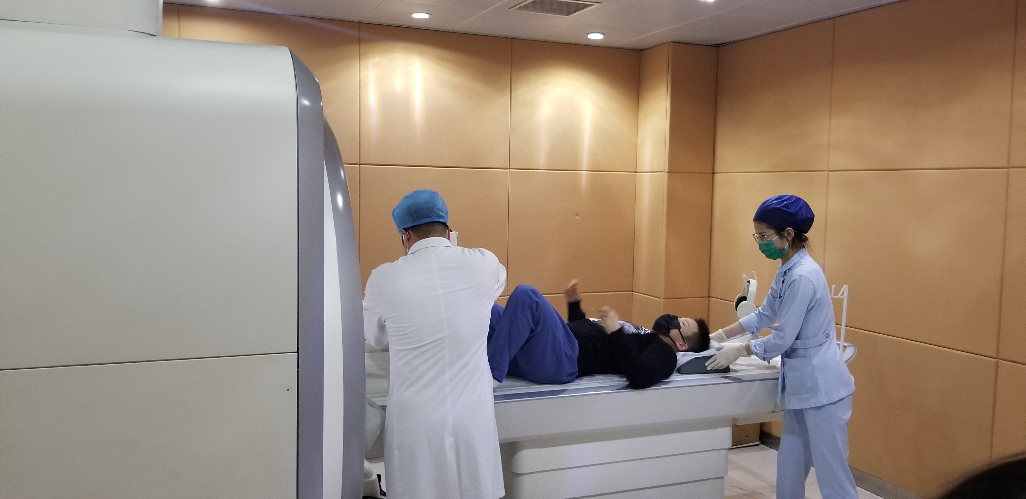 张伟丽在技师和护士的引导下进行体位摆放,检查开始后,技师进行定位扫描,约15分钟后,检查结束,张伟丽更衣至休息室休息。