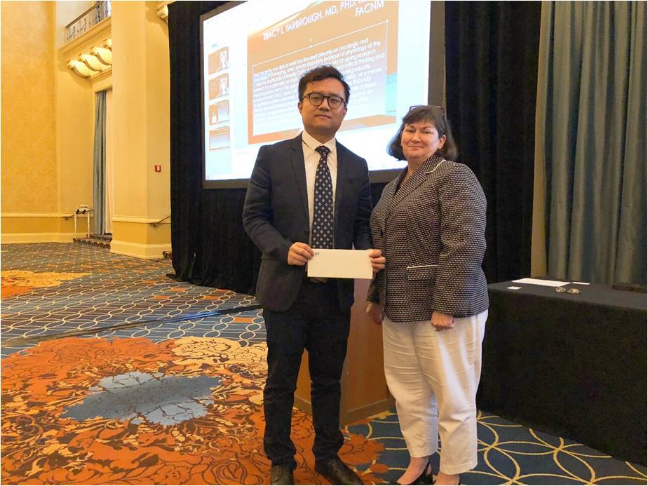 杭州全景医学影像诊断中心许远帆医师的2篇论文摘要被选中大会发言,分别是关于PET/MR在乳腺和肝脏肿瘤相关应用的两篇论文,并且题为“Diagnostic value of 18F-FDG PET/MR imaging in occupied breast tumors and comparative study with PET/CT”的PET/MR在乳腺癌研究方面的论文,获得今年SNMMI-ERF(Education Relief Foundation)协会颁发的年度最佳摘要奖项(每年获奖名额2名)。许医师也受邀参加美国核医学与分子影像教育研究基金会ERF(Education and Research Foundation for Nuclear Medicine and Molecular Imaging,ERF)举办的颁奖午宴。