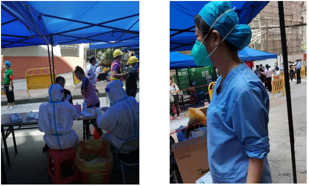 疫情防控是当前最重要、最紧迫的任务,紧急支援,刻不容缓。6月10日,广州全景中心医护团队响应号召火速集结,中心王红依、陈小妹、羊显桦、王欢、黄宇程再次拉开支援社区核酸采样序幕。在经过个人防护和核酸采样强化培训后,继续驻守采样点,确保核酸采样工作顺利进行。