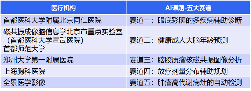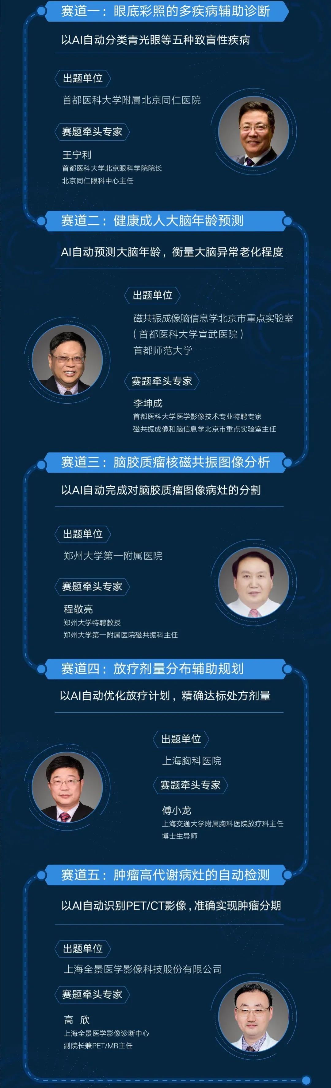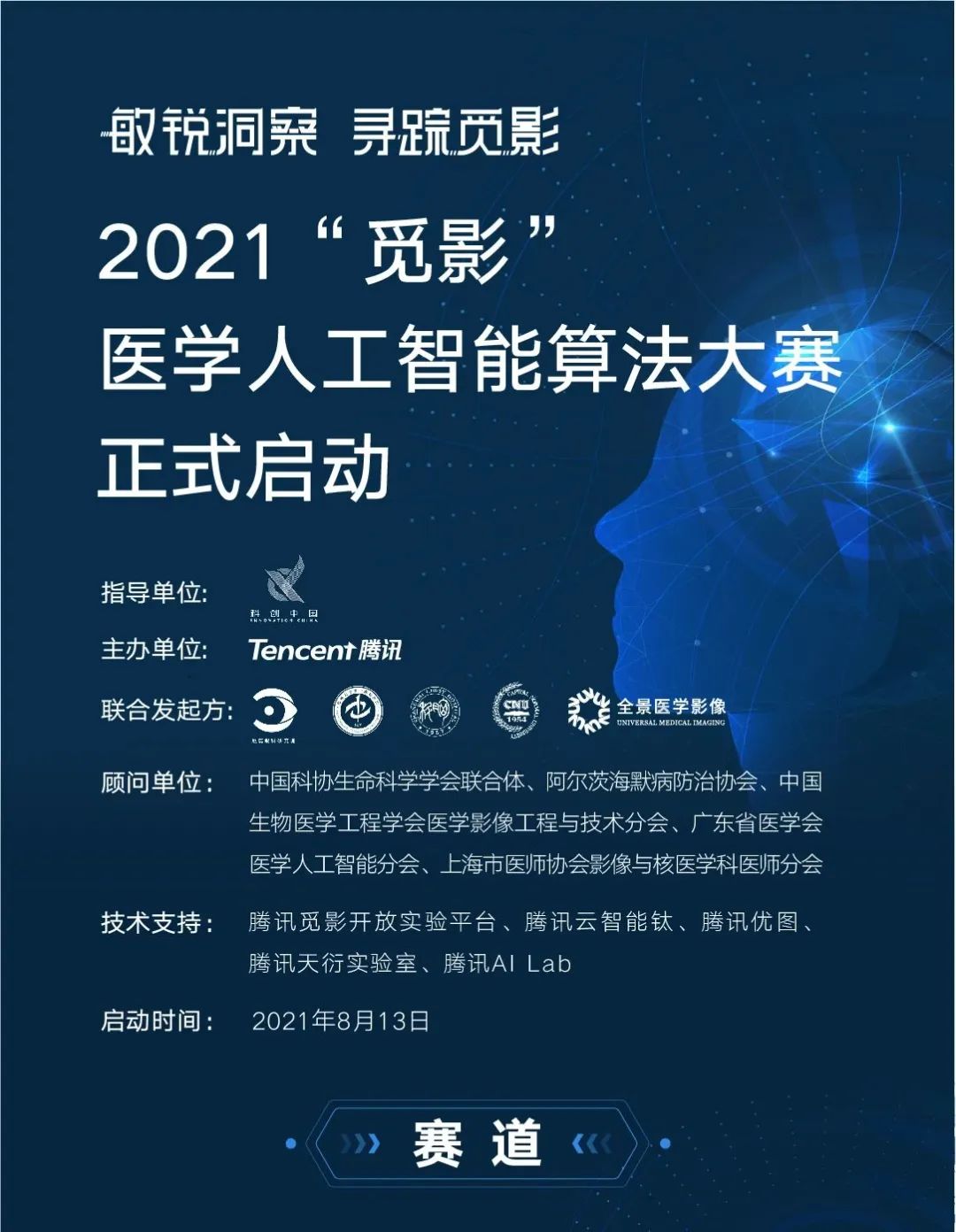 8月13日,由“科创中国”联合体指导,腾讯公司联合首都医科大学附属北京同仁医院、首都师范大学、郑州大学第一附属医院、上海市胸科医院、全景医学影像联合发起的2021“觅影”医学人工智能算法大赛正式启动,多位临床专家从临床实际需求出发,发起五大AI挑战课题,落点致盲性疾病分类、阿尔茨海默症早期发现、脑胶质瘤识别、放疗计划辅助、肿瘤高代谢病灶检测等多个临床医学难题,是目前最具挑战,也是最具临床价值的医学AI比赛。