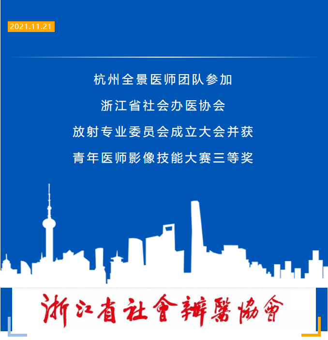 于21日上午举行的浙江省社会办医协会放射专业委员会青年医师影像技能大赛中,由汪军峰医生带队,梁江涛医生、云帅医生参赛的全景医生团队获得三等奖。