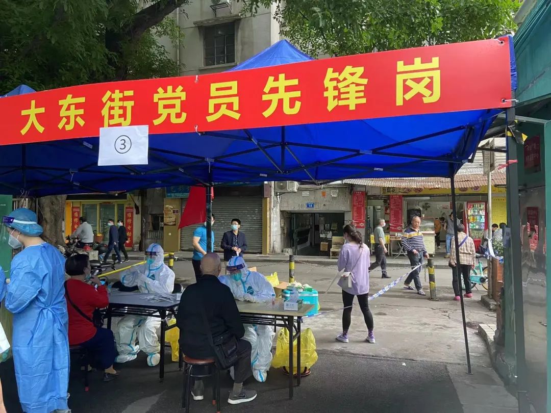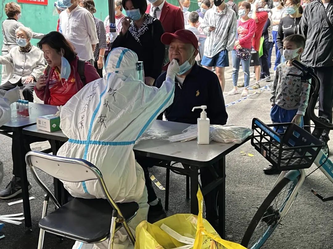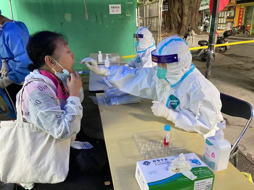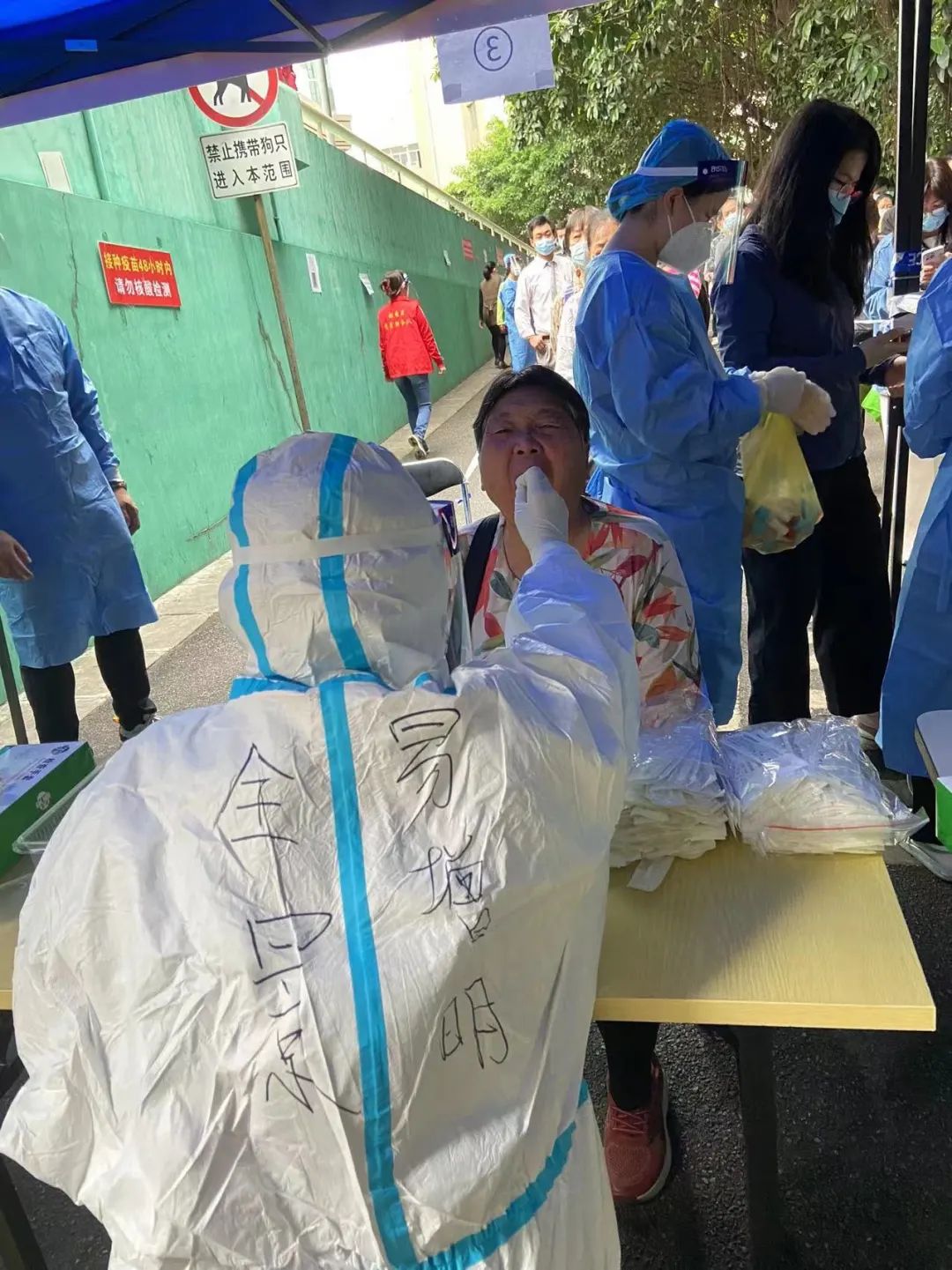 大东街道的核酸采样点检测现场,“全副武装”的广州全景医护人员有条不紊地为市民进行核酸采样工作。