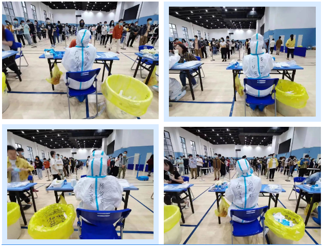 为了更好地配合采样工作,中山大学以楼层为单位进行核酸采样,在室内球馆实现核酸检测工作管理。让我们感动的是,排队采集时,学生们非常有秩序和耐心。