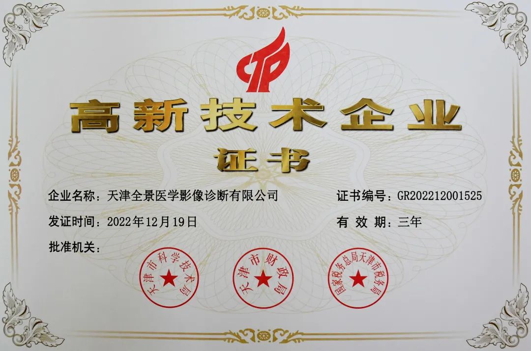 近日,天津全景医学影像诊断有限公司荣获国家高新技术企业认定。