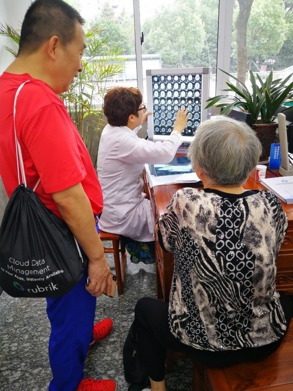 听闻有上海专家回乡做义诊,有些在外工作的乡民特地赶回来带着父母来到谢医生这里看片问诊。对于每位前来问诊的家乡父老,谢医生都详细了解病情,仔细地查看片子,用心地一一做了解答,耐心地为病人分析病情。