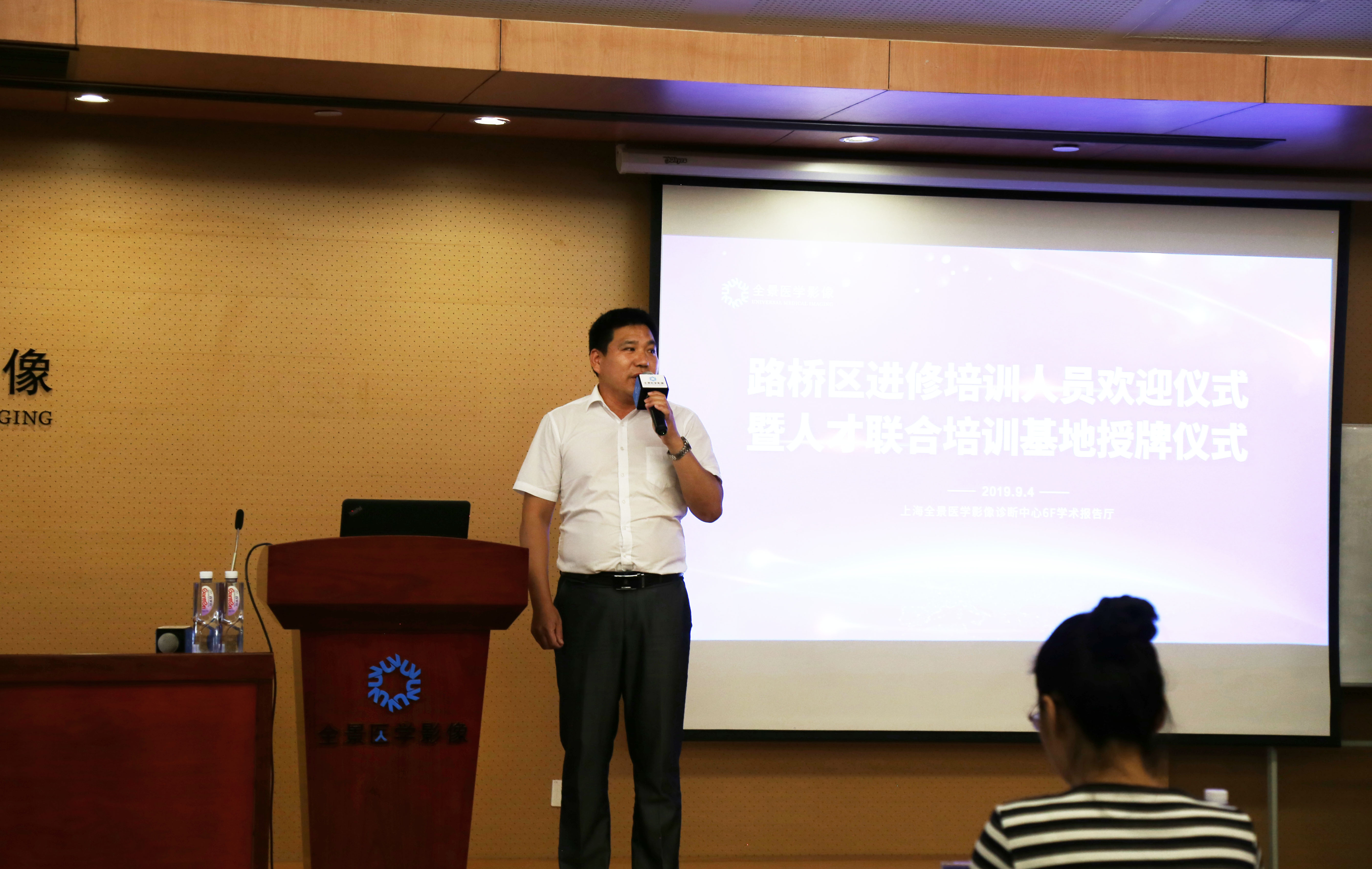 总部人力资源部总监孙玉代表杨环球董事长对路桥区领导和前来参加培训的医生表示了热烈欢迎,同时感谢路桥领导和同仁们对全景的支持与信任。