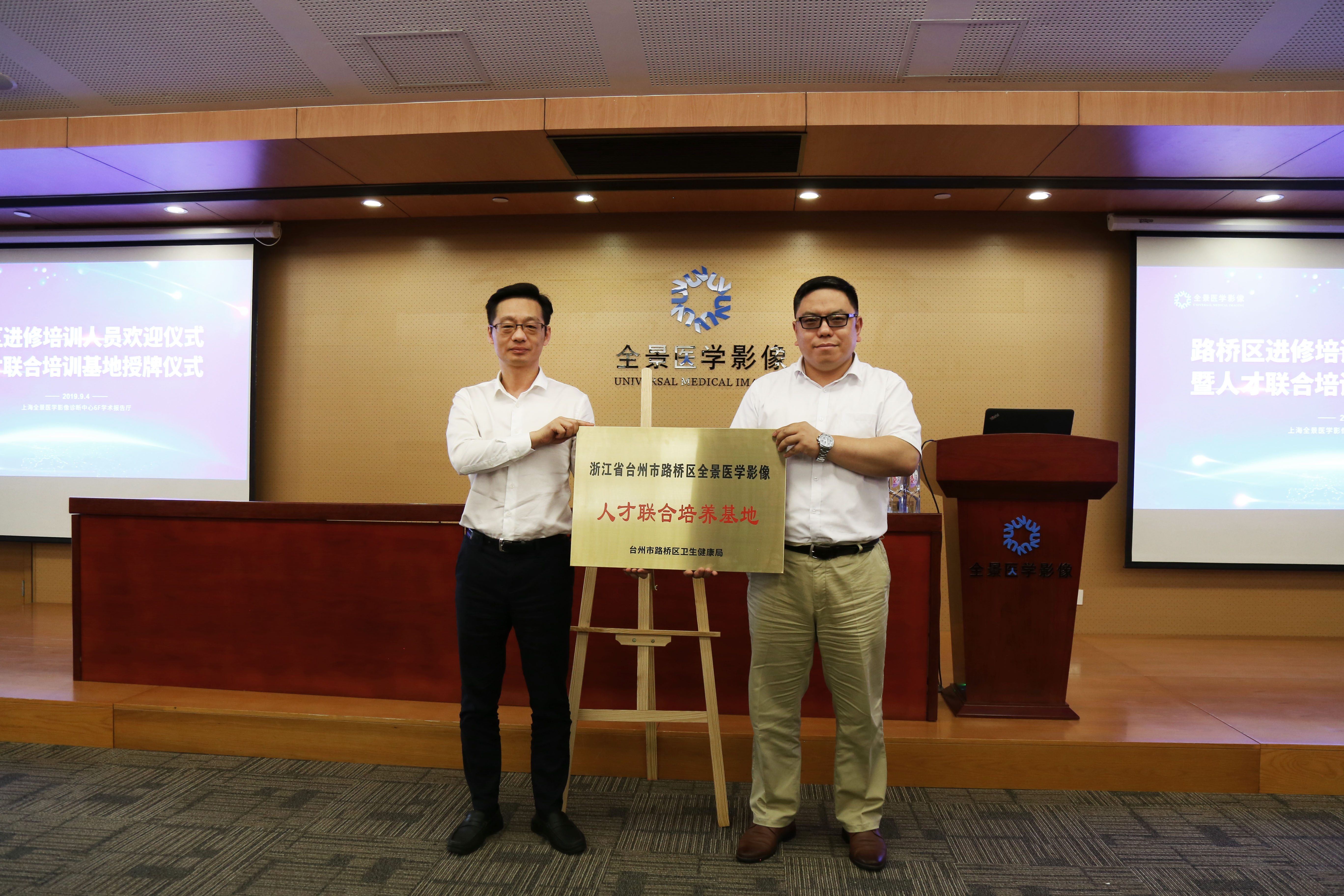 8月31日,上海全景医学影像中心与路桥区卫健局签约了《沪路医学影像人才培养与技术合作协议书》。9月4日路桥区第一批进修学习的医师抵达上海,全景医学影像诊断中心举办了隆重的《路桥区进修培训人员欢迎仪式暨人才联合培训基地授牌仪式》。