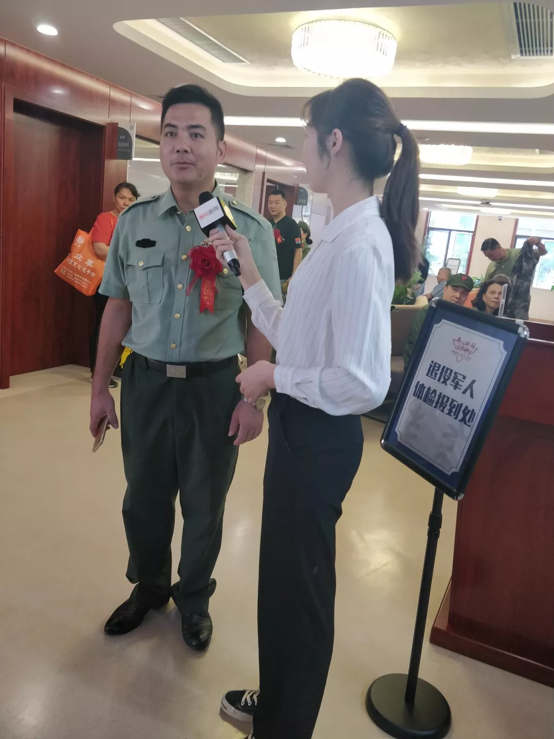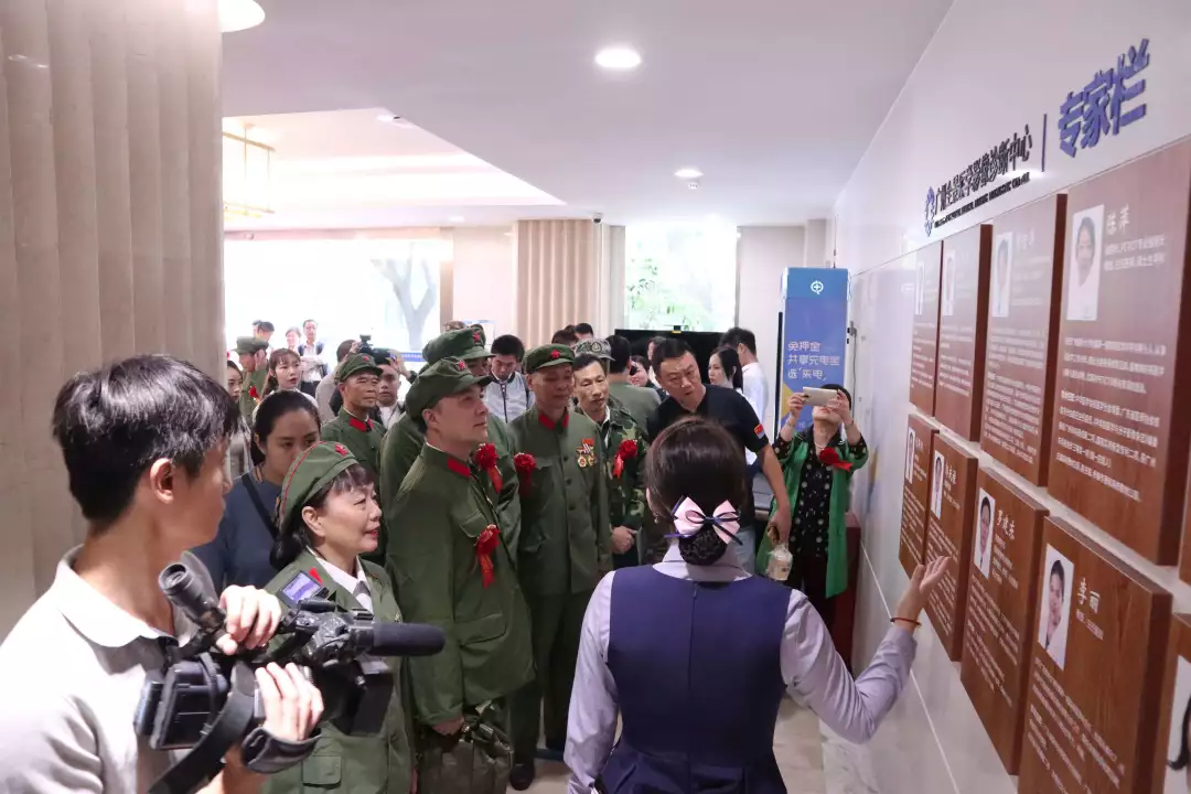 参观至五楼体检中心时,27位到场的退役军人现场免费进行体检,体验来自于社会的关爱,现场爱国情怀热情高涨。