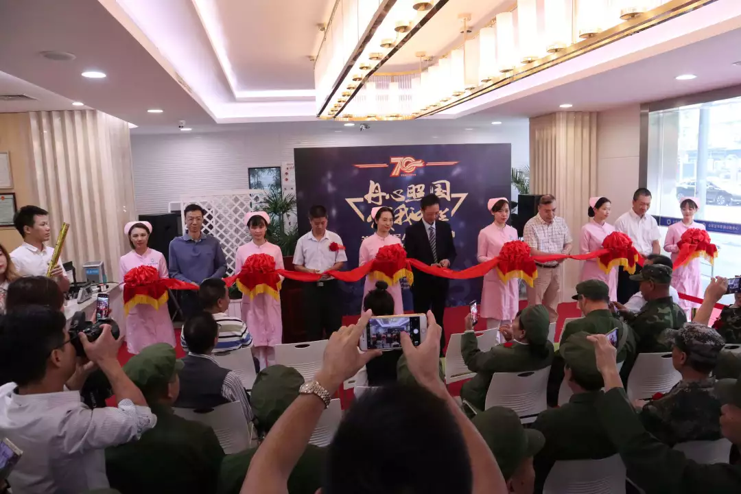 周智洋院长现场邀请叶文辉书记、雷金源书记、周培全副主任、唐庆坤副主任、龙国祥理事长共同为关爱退役军人健康公益活动启动剪彩,启动仪式在剪彩的礼炮声中结束。