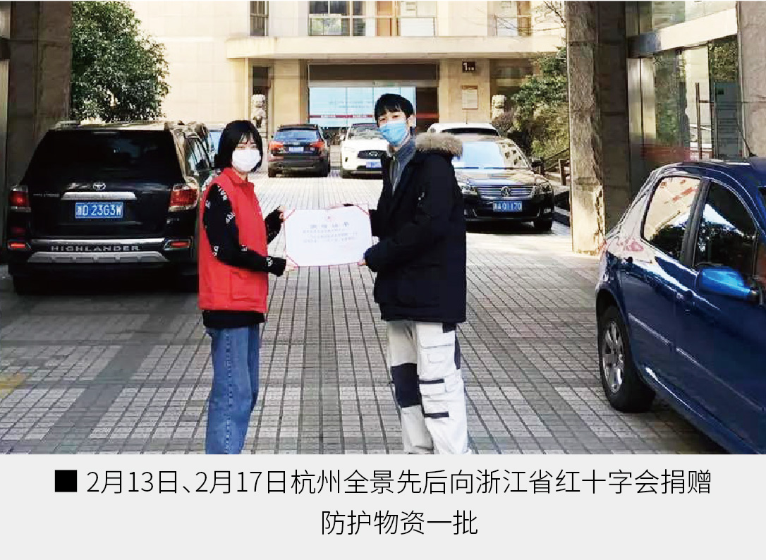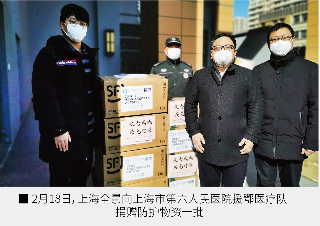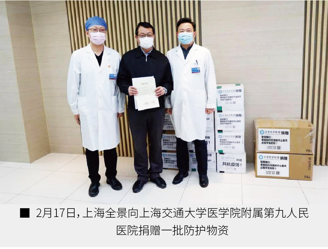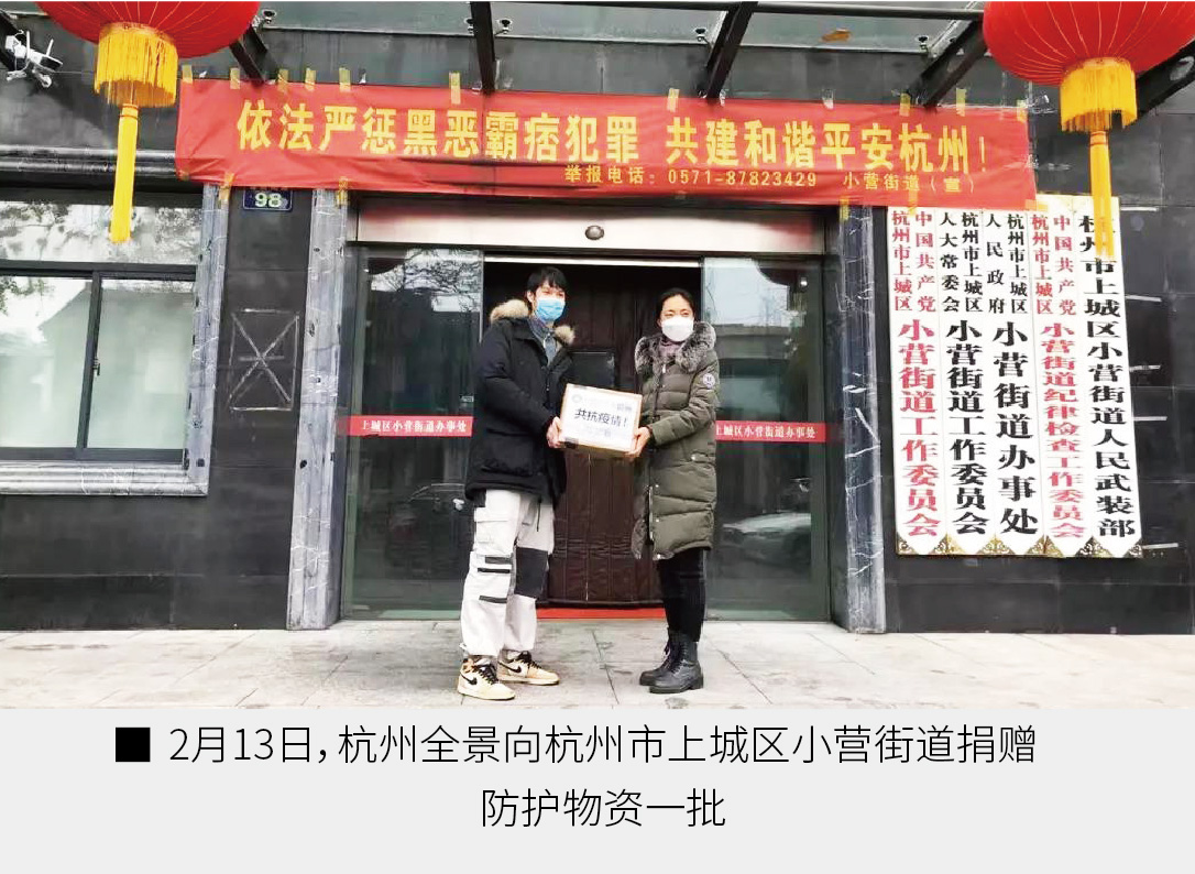 自2月5日起,上海全景先后向漕河泾街道、虹梅街道、华鑫物业、华鑫慧享园物业、光大物业、上海华富大厦物业、万科中心物业、中星城物业捐赠防疫物资,用实际行动感谢坚守在疫情防控一线的社区及物业工作者。