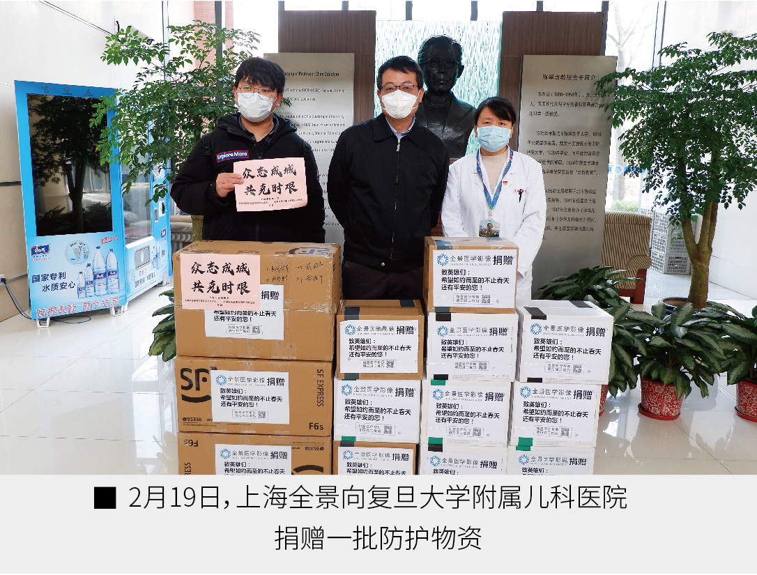 自新冠肺炎疫情爆发以来,全景在全国开展免费远程阅片活动,向全国医疗机构免费开通全景云平台,我们的医生也参与录制小视频教大家如何科学地防控新冠病毒。随着疫情的升级,防护物资越发紧缺,全景一直在不遗余力地发动各种渠道采购物资捐献给最需要的单位。相较于一些大企业的抗疫善举,我们所做的是那样微不足道。
