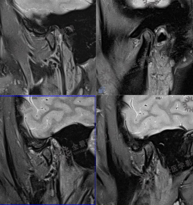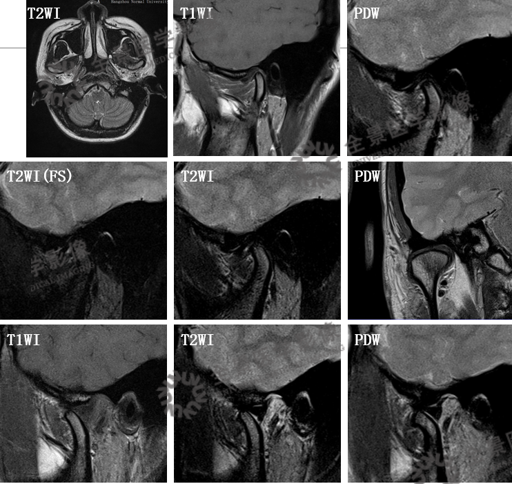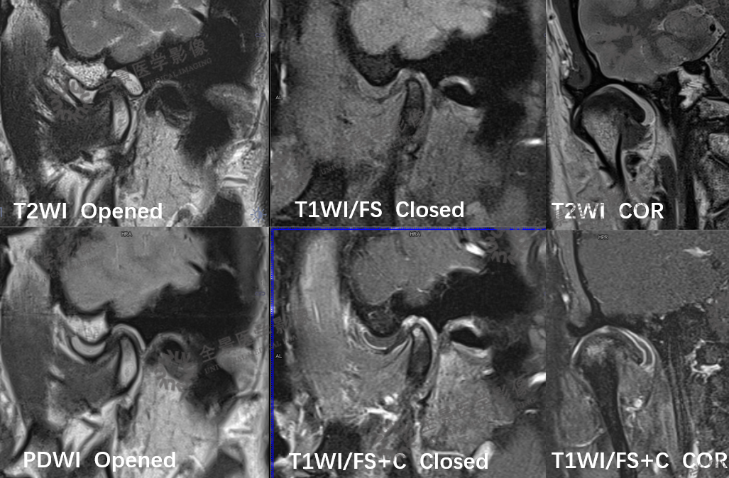 MRI:可清楚、全面地反映关节结构及附件组织的变化。MR动态电影能够很好地显示关节盘、髁状突的运动情况