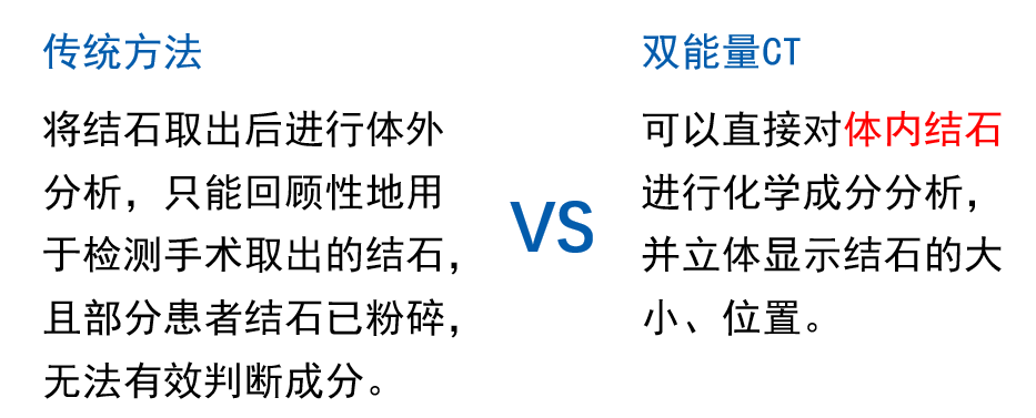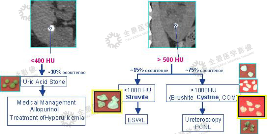 双能量CT可将尿酸结石和其他类型的肾结石区分开来: