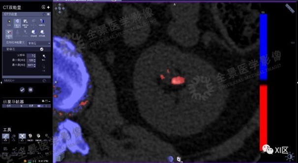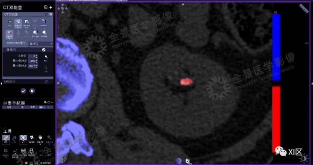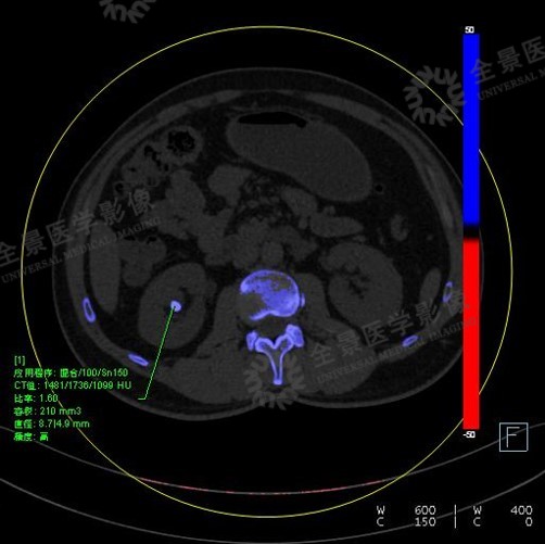 将肾结石处理参数中的最小值适当降低,那些低密度的小结石也会加上伪彩,从而可以评估结石的成分。