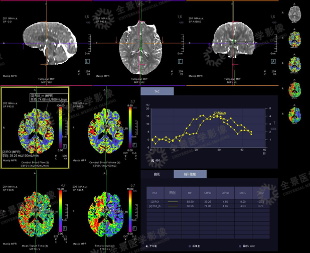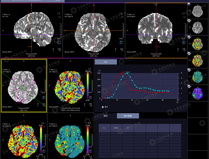 随着高端CT的自适应4D螺旋扫描模式(摇篮床模式)的引入,探测器限制被克服,从而实现了全脑CT灌注。