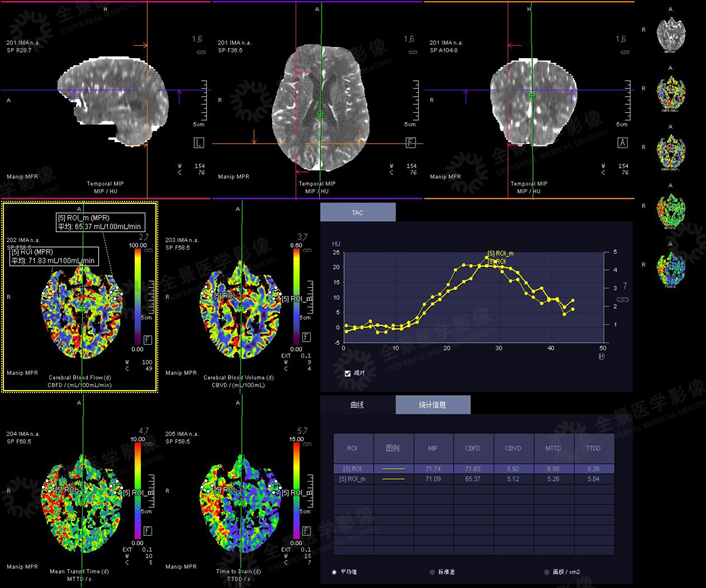 头颅灌注示:右枕叶异常灌注,CBF较左侧降低,MTT、TTD时间延长。