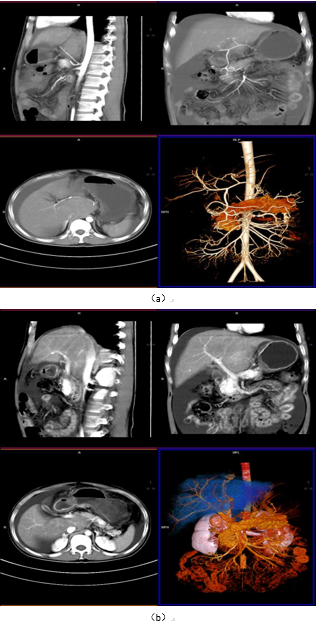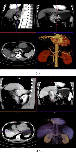 图1:中心常规肝脏CT增强动脉、门脉显像(VRT/MPR)