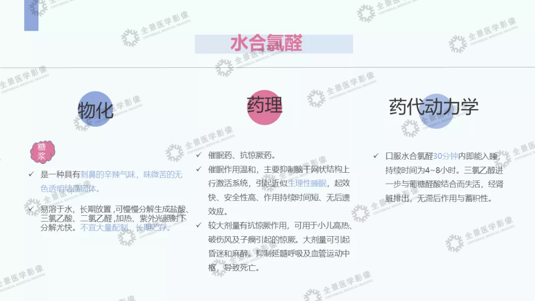 从儿童医学影像检查、婴幼儿镇静药物的使用两方面来介绍。讲解了婴幼儿影像检查的特殊性以及相关影像检查前、检查中、检查后应该注意的事项;重点介绍了镇静药物水合氯醛的药物用量、不良反应、给药方式、注意事项等问题。