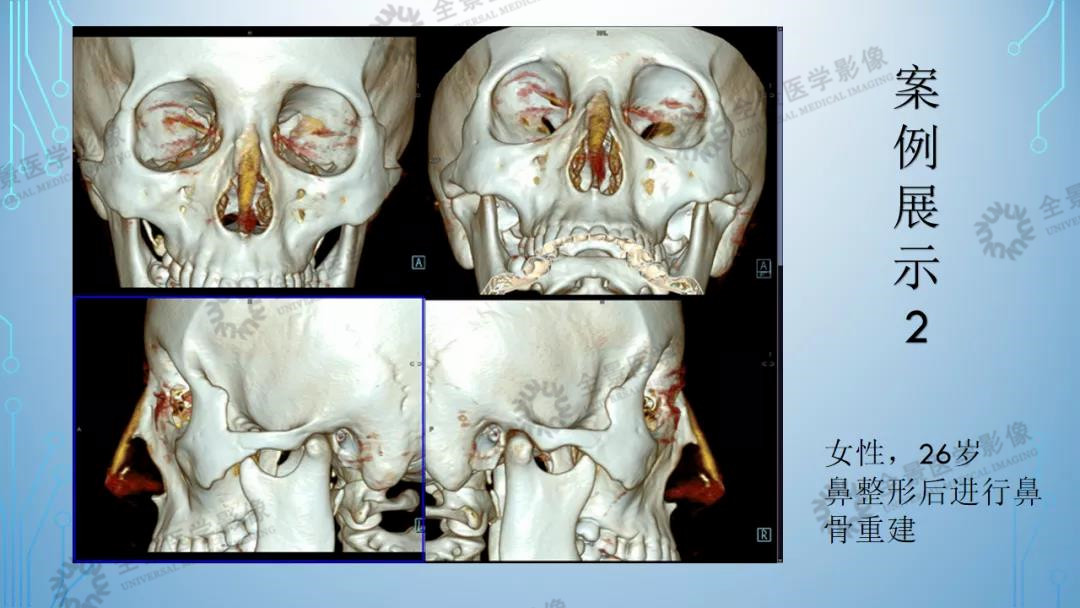 介绍了CT三维图像重建技术在鼻整形、下颌骨整形中的应用,利用三维重建技术对鼻软骨、肋软骨和下颌骨进行分析评估,为临床提供更准确的数据和图像,全景特有的图像渲染技术cVRT,使得图像更加立体直观,为术前诊断评估、手术方案的制定提供了强有力支持。